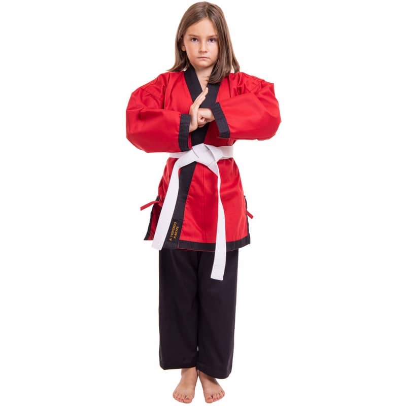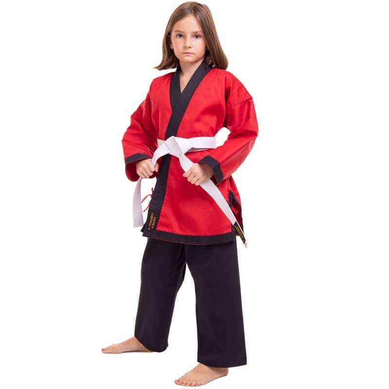 Кімоно для айкікендо карате Ballonstar, розмір 0 (зріст 130), червоно-чорне, код: AKS_0RBK