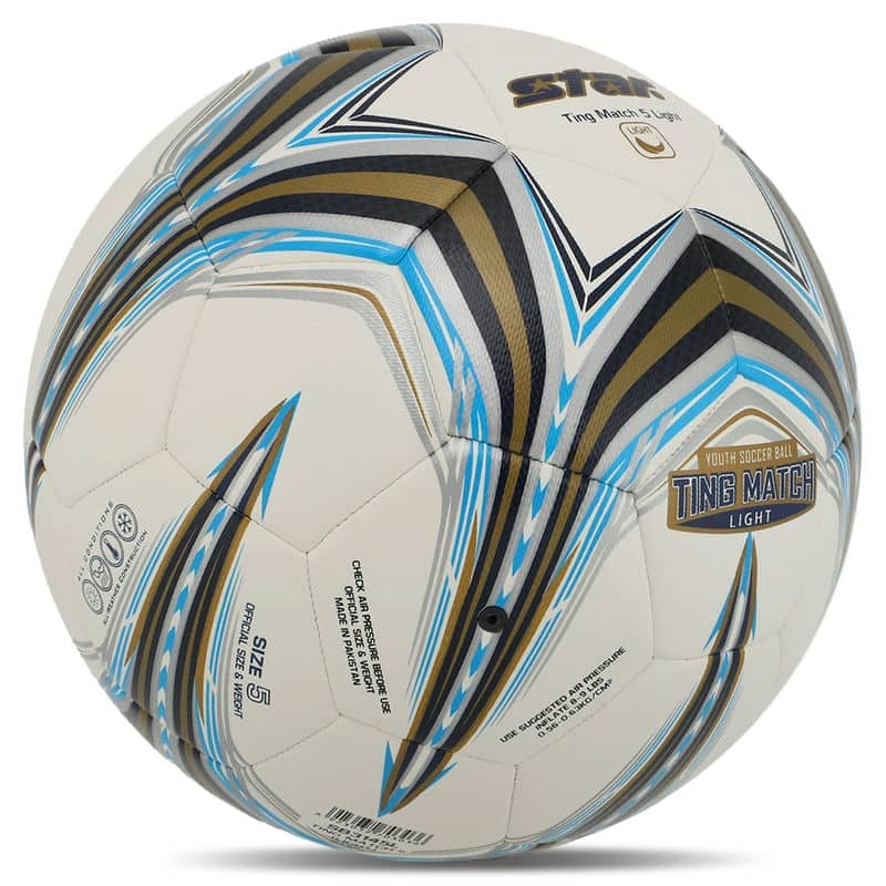 М"яч футбольний Star Ting Match 5 Light Hybrid №5 PU, білий-синій, код: SB3145L-S52