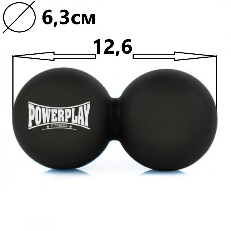 Масажний силіконовий подвійний м"яч PowerPlay Silicone Lacrosse Peanut Ball 1260х63 мм, чорний, код: PP-4355_Black