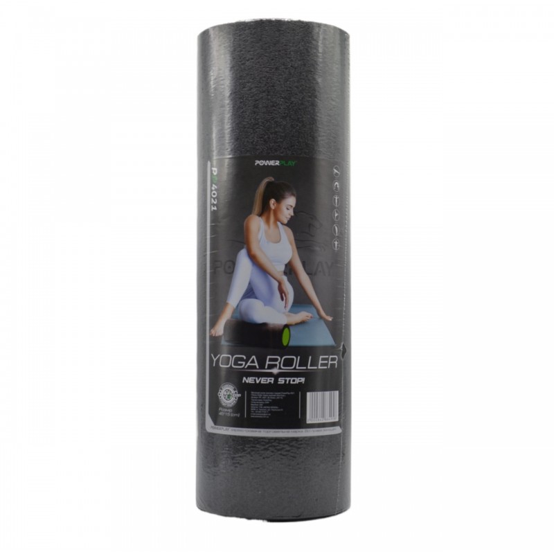 Масажний ролик (роллер) гладкий PowerPlay Fitness Roller 300x150 мм, чорний-зелений, код: PP_4021_BL/Green_(30x15)