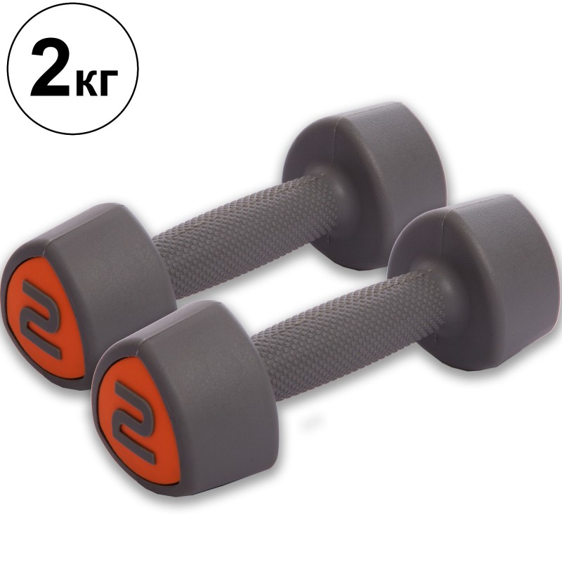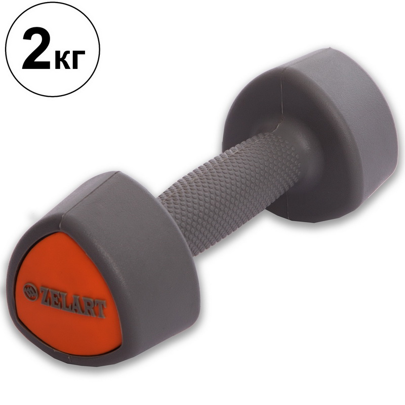 Гантелі цільні з поліуретановим покриттям Record 2х2кг, сірий-помаранчевий, код: TA-0930-2-S52