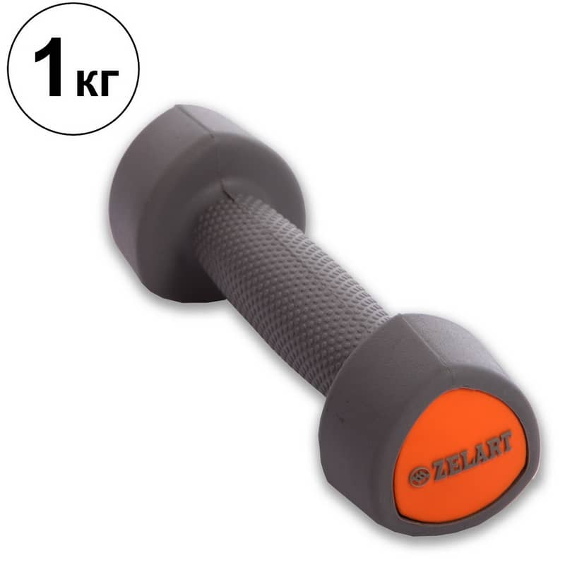 Гантелі цільні з поліуретановим покриттям Record 2х1кг, сірий-помаранчевий, код: TA-0930-1