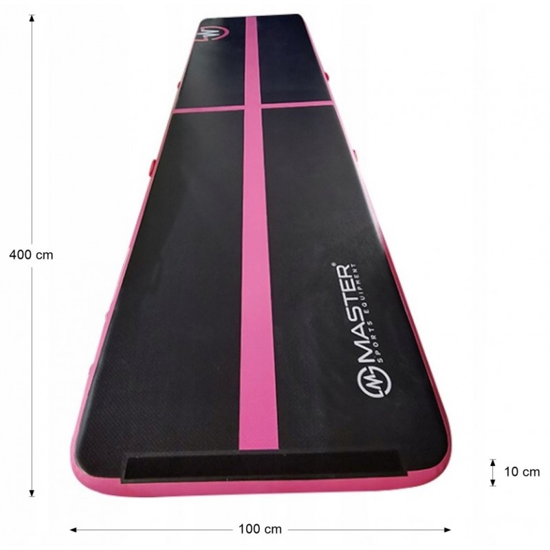 Надувний гімнастичний мат Master 4000x1000x100 мм, чорно-рожевий, код: 8592833010216-IN