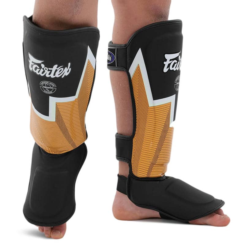 Захист гомілки та стопи для єдиноборств Fairtex, розмір M, чорний-жовтий, код: BO-9486_MBKY