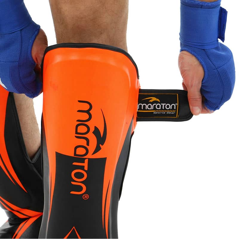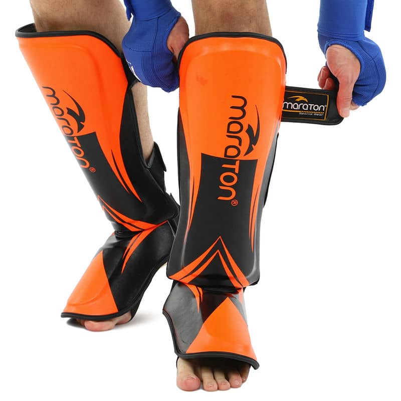 Захист гомілки та стопи дитячий Муай Тай, ММА, Кікбоксинг Maraton L, помаранчевий-чорний, код: BO-9321_LORBK