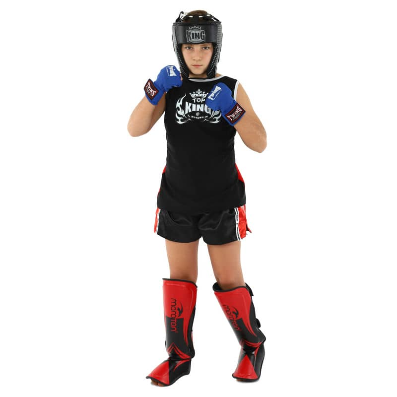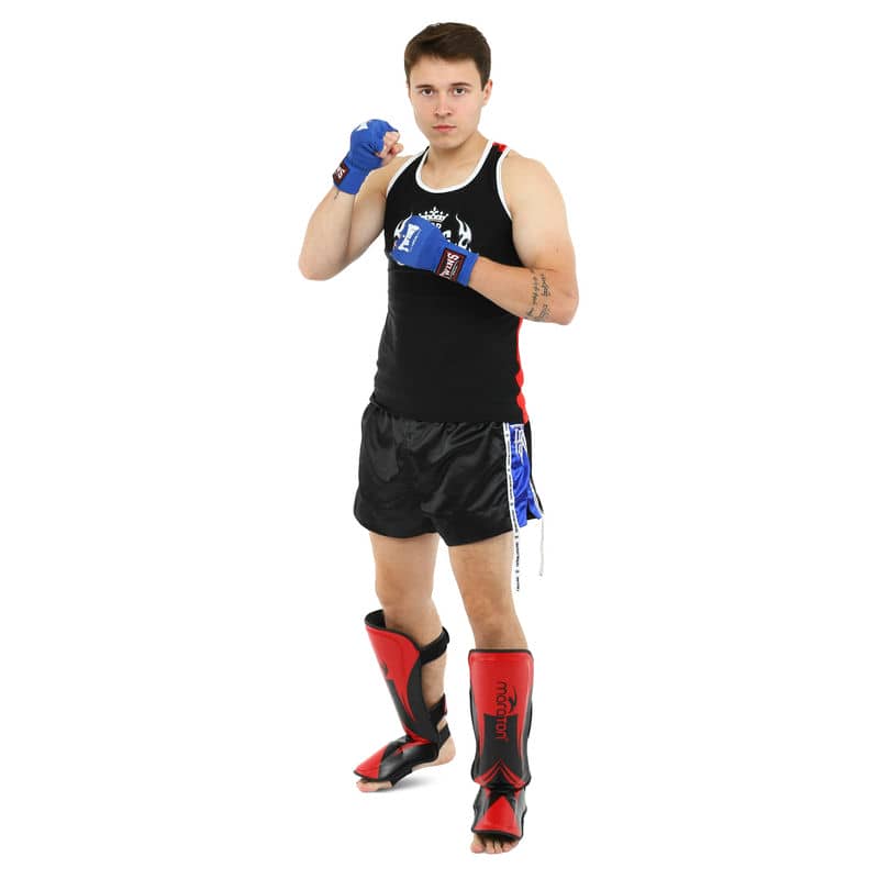 Захист гомілки та стопи дитячий Муай Тай, ММА, Кікбоксинг Maraton L, червоний-чорний, код: BO-9321_LRBK