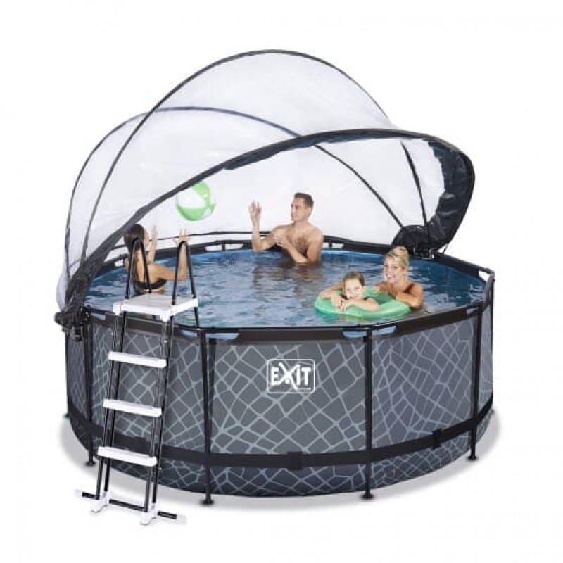Басейн круглий з куполом Exit "чорна шкіра" 427х122 см (пісочний фільтр), код: 30.47.14.20