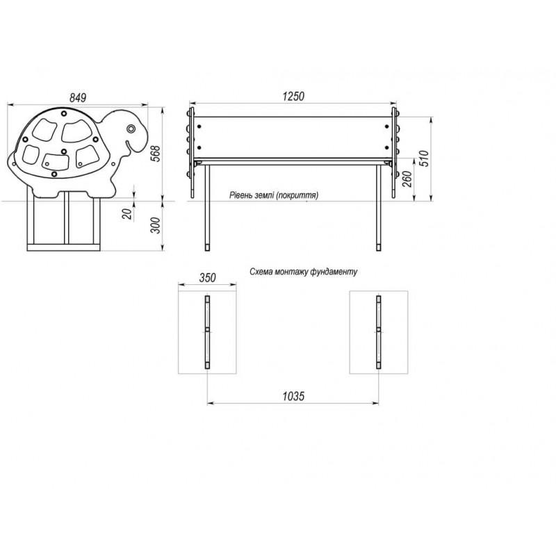 Дитяча лавка подвійна InterAtletika Черепаха 1230х849х563 мм, код: S746-SM