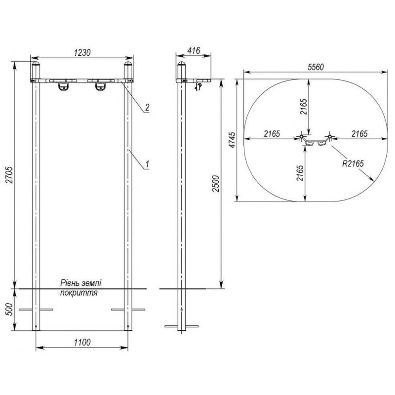 Турнік із захопленнями InterAtletika 1230х416х2705 мм, код: MF2.8-SM