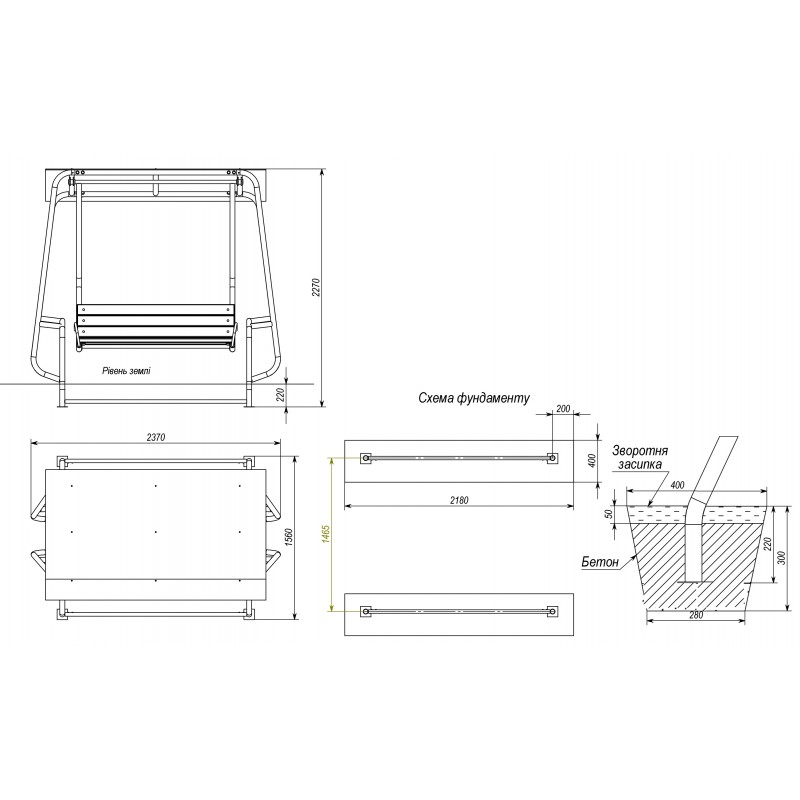 Гойдалка для парку InterAtletika 2370х1560х2270 мм, код: T408-SM