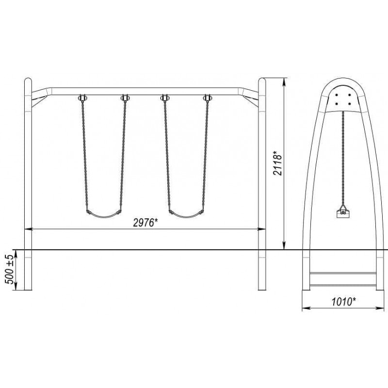Гойдалка подвійна на ланцюгах InterAtletika 2976х1010х2118 мм, код: TE415-SM