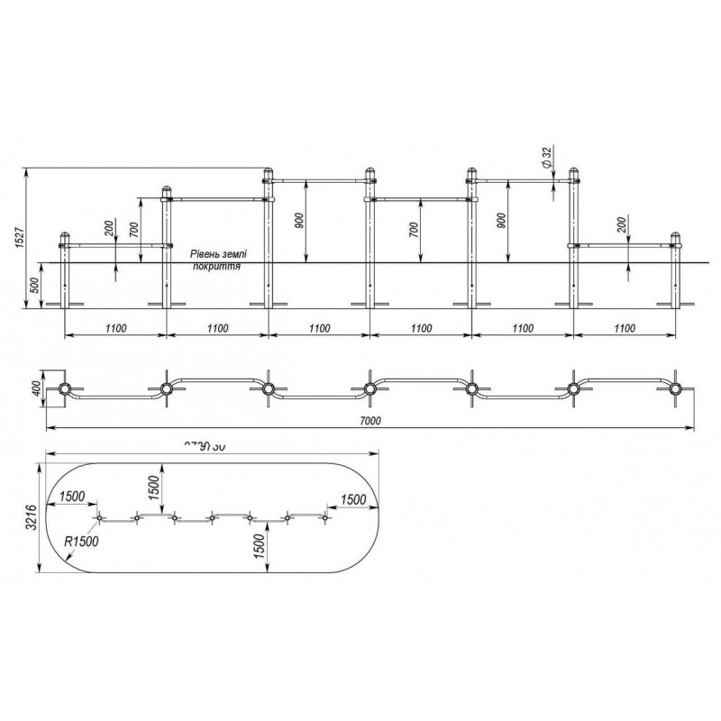 Каскад турніків для віджимань InterAtletika 7000х400х1027 мм, код: S832.5-SM