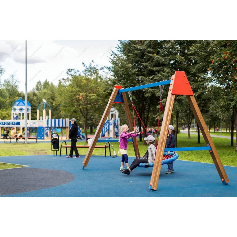 Гойдалка одинарна на дерев'яних стійках InterAtletika Гніздо Аист 2604х1758х2205 мм, код: TE412-RC-SM