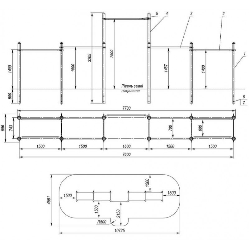 Спортивний комплекс InterAtletika Воркаут Брусья-турник, 7730х913х2705 мм, код: S831.1-SM