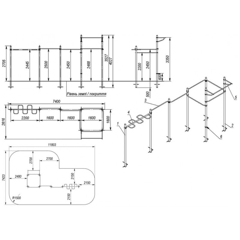 Мультифітнес станція InterAtletika Воркаут 5322х3685х2425 мм, код: SM801.2-SM