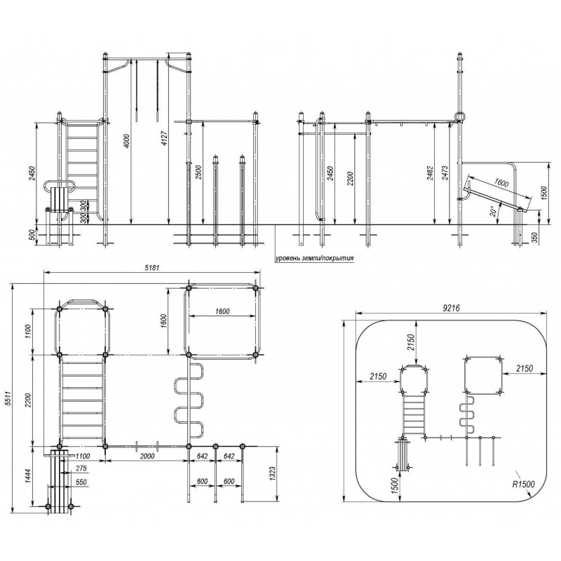 Спортивний комплекс InterAtletika Воркаут 5181х5880х4127 мм, код: S831.9-SM