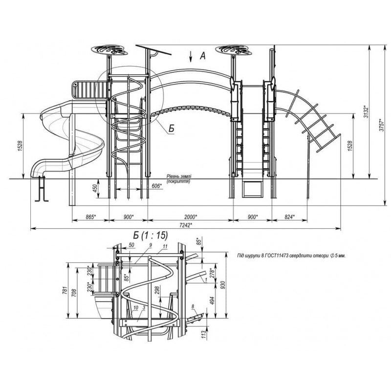 Ігровий комплекс InterAtletika Панда-М, 7242х5306х3132 мм, код: T907.1М-SM