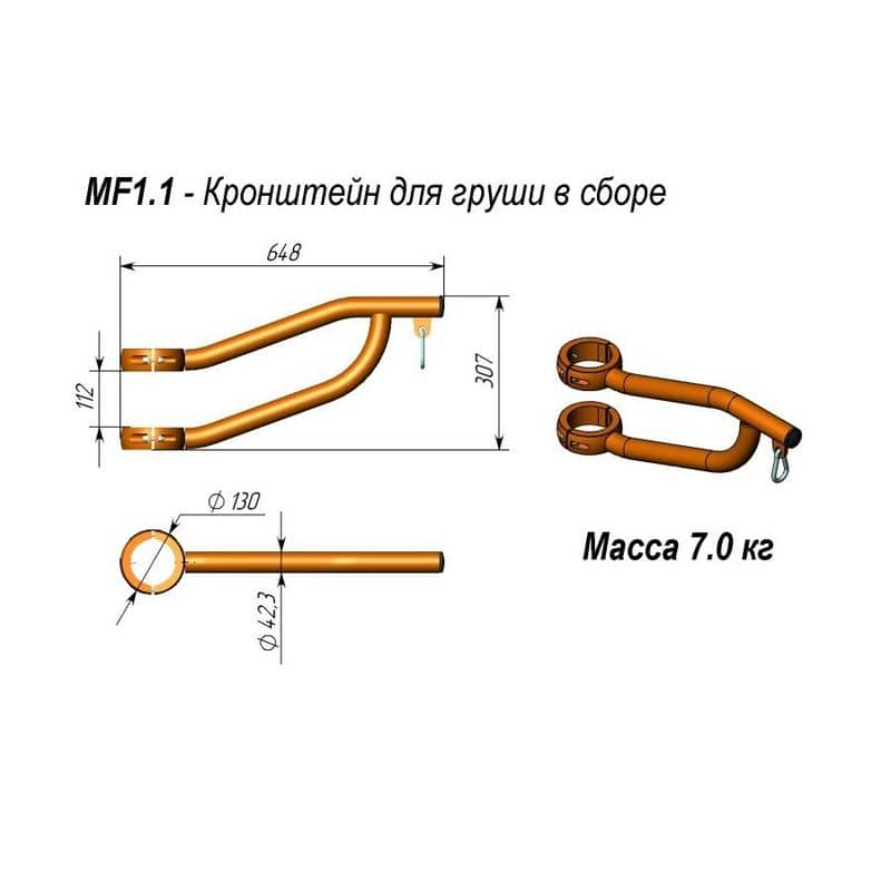 Кронштейн для груші InterAtletika у зборі, 648х130х307 мм, код: MF1.1-SM