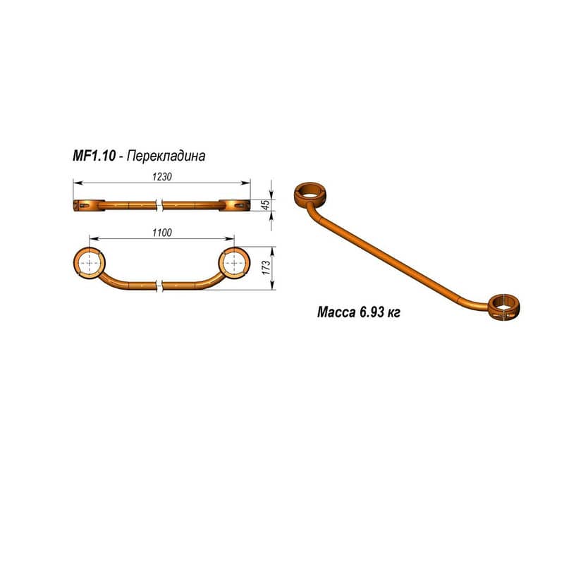Перекладина InterAtletika 1230х173х45 мм, код: MF1.10-SM