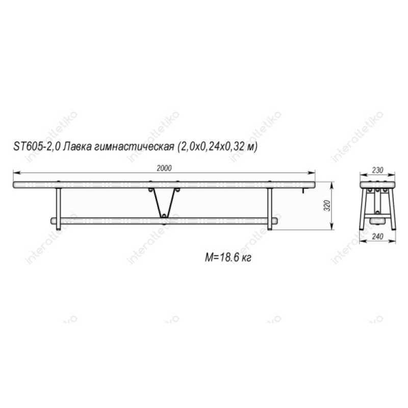 Лава гімнастична InterAtletika 2000х240х320 мм, код: ST605-2,0-IA
