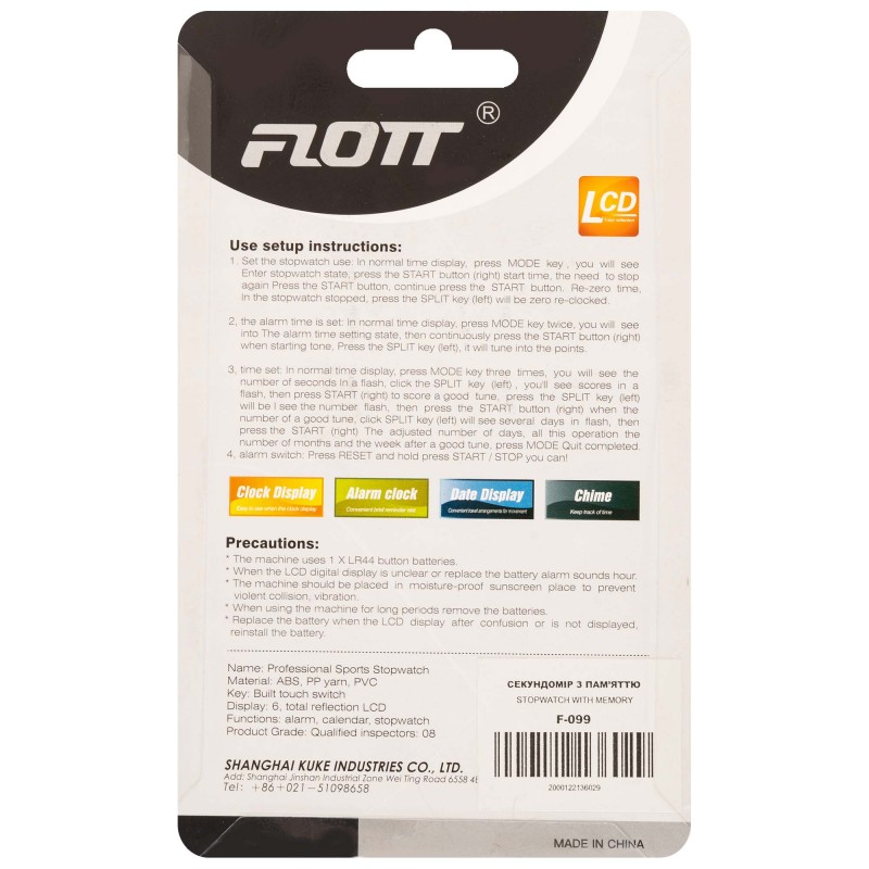 Секундомір Floot F-009 створений для тих, хто цінує секунди та долі секунди. Він стане ідеальним вибором для тренерів, вчителів фізичної культури, спортивних ентузіастів, а також туристів і орієнтувальників. Особлива спеціалізація цієї моделі — допомога на тренуваннях і змаганнях просто неба, де синхронізація часу та базова орієнтація місцевістю грають ключову роль.