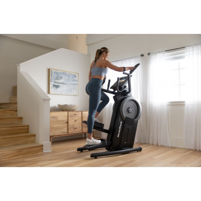 Степпер NordicTrack Step Climber працює за принципом підйому по сходах, що дозволяє тренувати сідничні м'язи та квадріцепси без навантаження на коліна чи щиколотки. Крок короткий та природний, з вертикальним підйомом, який допомагає підтримувати активність ніг протягом всього діапазону рухів. Це ідеальний тренажер для розвитку сили, витривалості або підтримки кардіо, особливо якщо вам потрібно рухатися, що дбайливо впливає на суглоби.