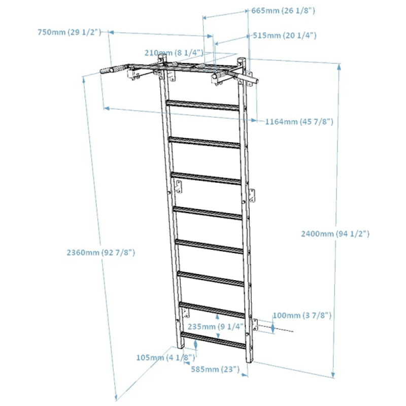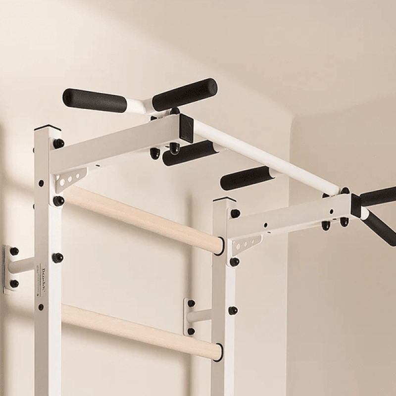 Шведську стінку BenchK 721B можна оснастити додатковим обладнанням, таким як турнік DB1B та тренувальна лава B1B, створюючи повноцінний домашній спортзал площею всього 1 квадратний метр.