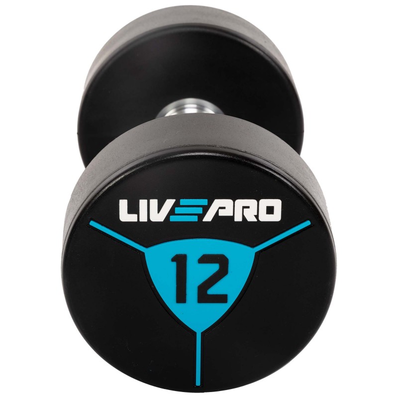 Гантелі цільні професійні з поліуретановим покриттям LiveUp 2х12 кг, чорний-синій, код: LP8000-12