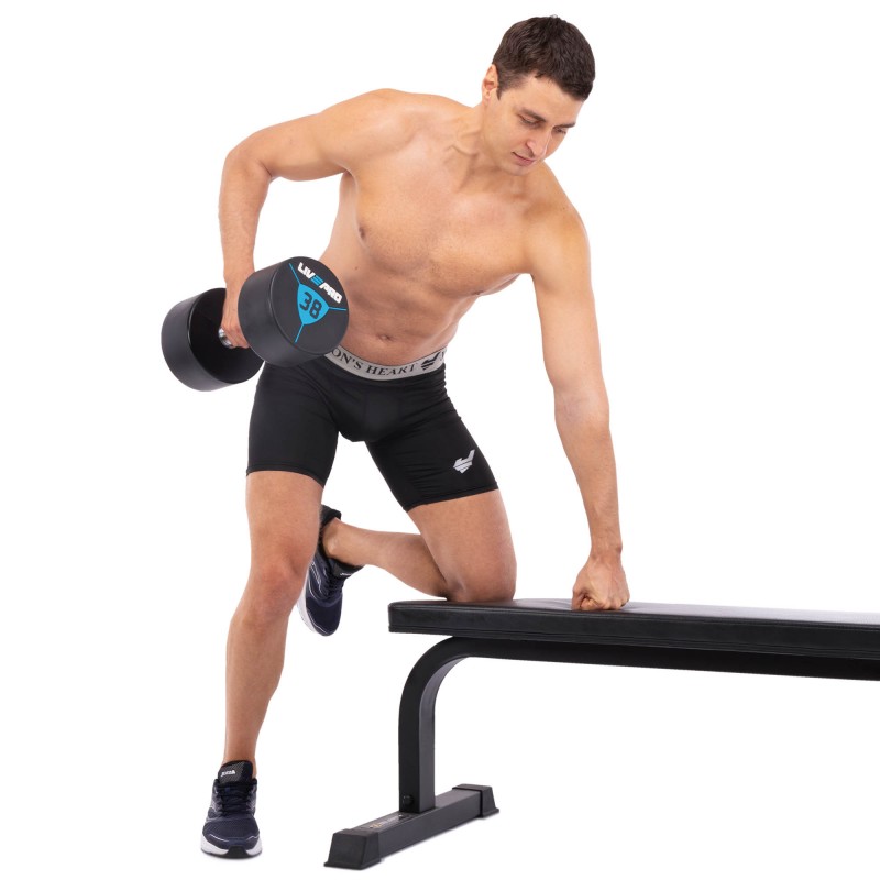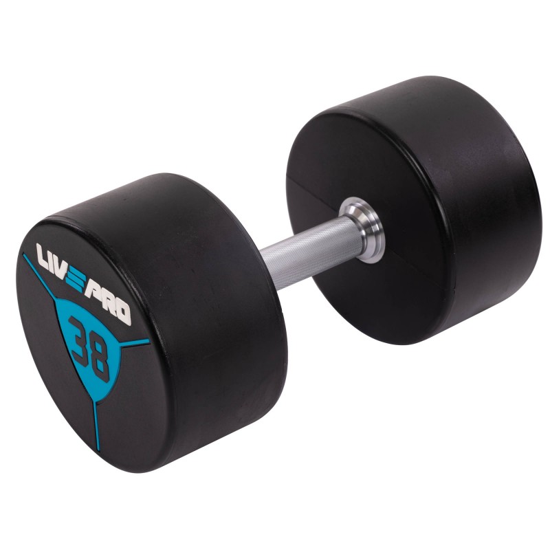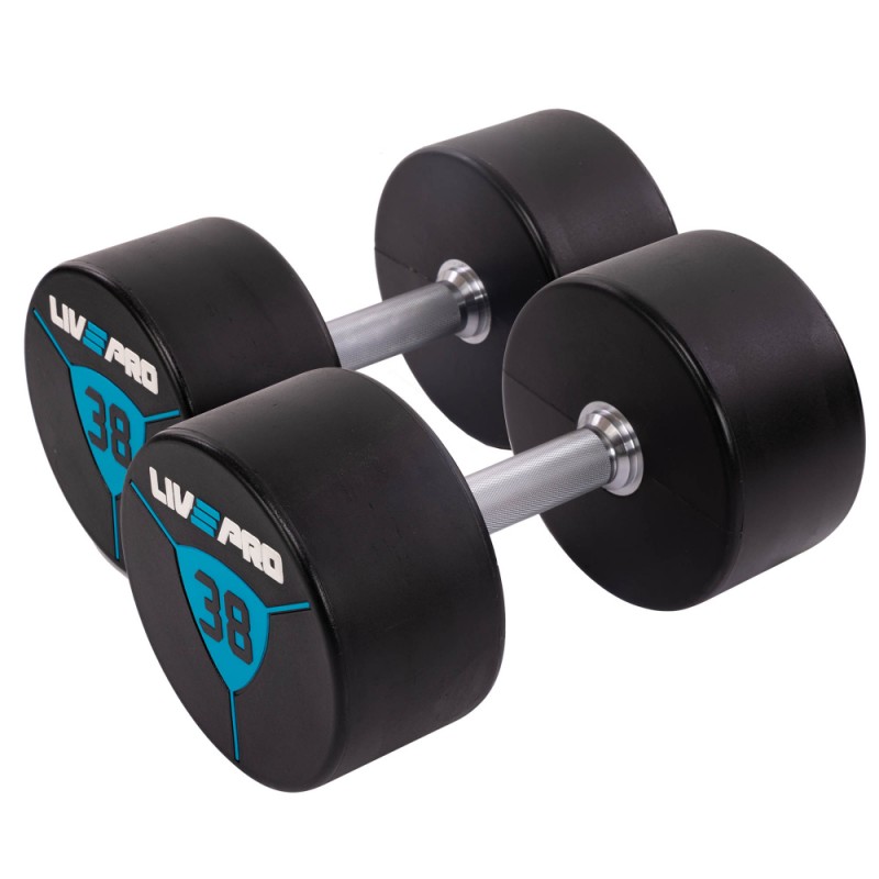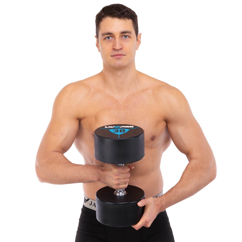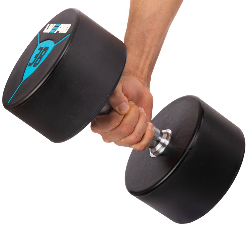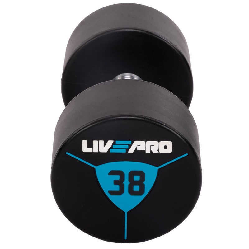 Гантелі цільні професійні з поліуретановим покриттям LiveUp 2х38 кг, чорний-синій, код: LP8000-38