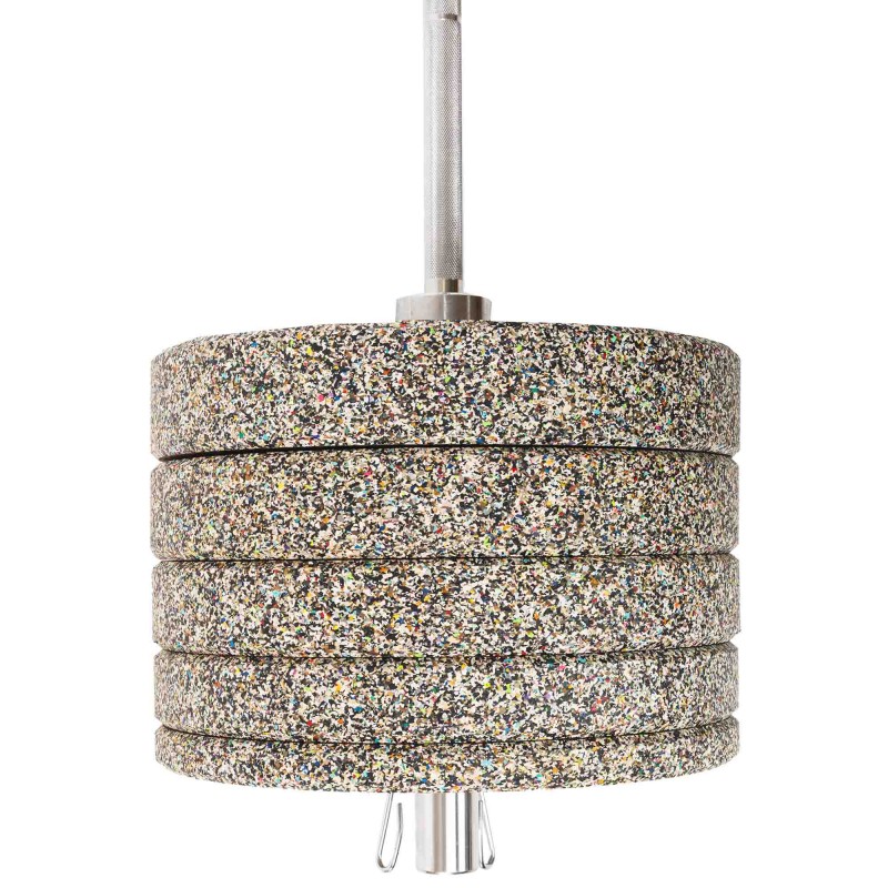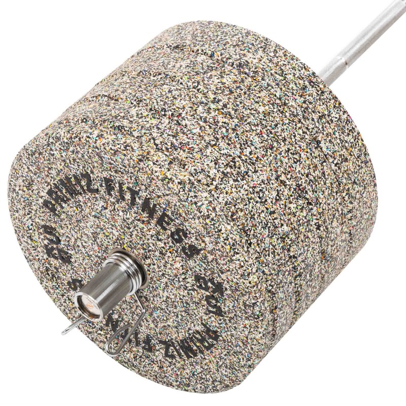 - Покриття з гуми захищає серцевину від корозії, зменшує шум від використання штанги і робить тренування безпечнішими.