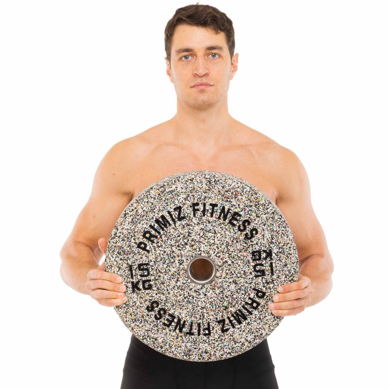 Бамперні диски зі структурної гуми Bumper Plates від бренду Record дозволяють займатися важкою атлетикою і виконувати силові вправи з олімпійською штангою. Диски виготовлені зі сталі і мають гумове покриття, яке зменшує шум від їх використання, а також захищає метал від корозії. Такі диски мають презентабельний зовнішній вигляд і відрізняються високою міцністю і довговічністю, ідеально підходять для комерційних тренажерних залів. На поверхні диска вказана його вага в кілограмах і фунтах, що спрощує ідентифікацію спортивного снаряда. Також диски різної ваги відрізняються за товщиною. Діаметр диска становить 450 мм, що відповідає вимогам до олімпійських дисків. Даний параметр не змінюється незалежно від ваги інвентарю. Отвір діаметром 51 мм дозволяє надягати диск на олімпійський гриф.