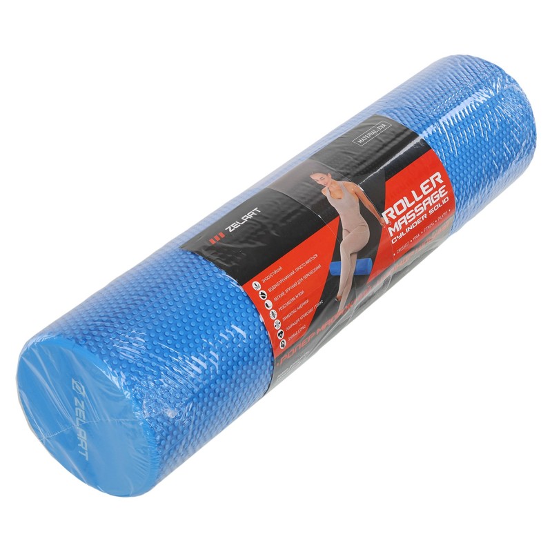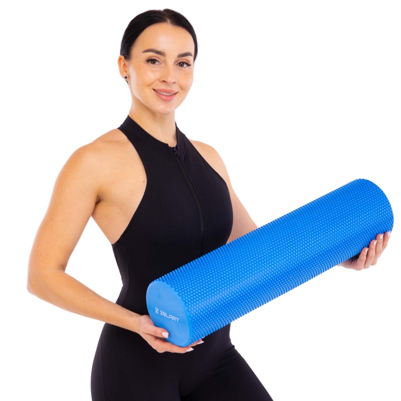 Ролер масажний циліндр цільний Zelart 60см, синій, код: FI-7692-60
