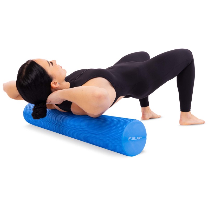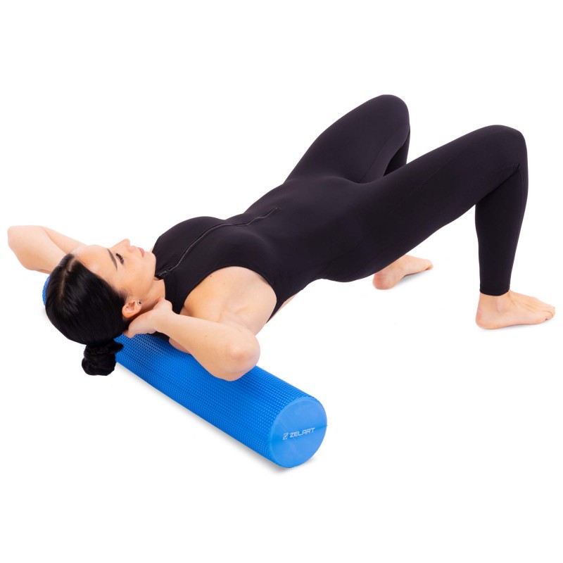 Ролер масажний циліндр цільний Zelart 90см, синій, код: FI-7692-90