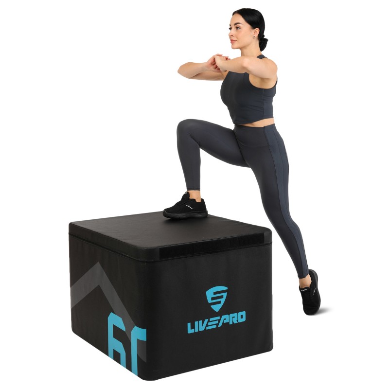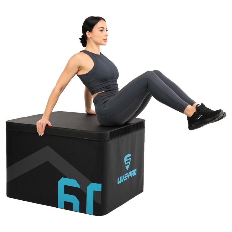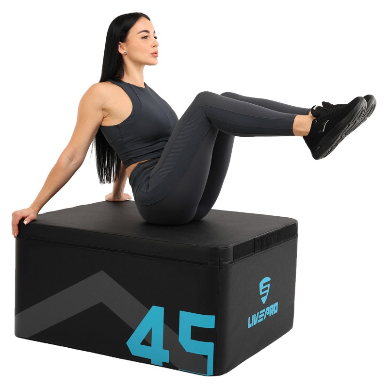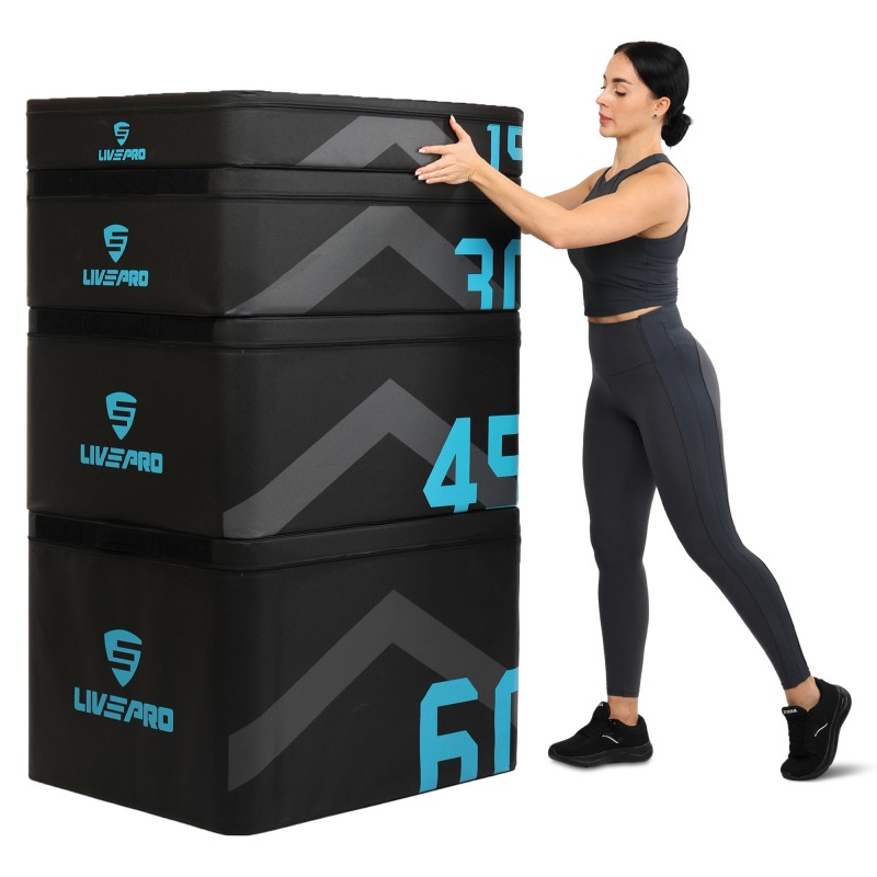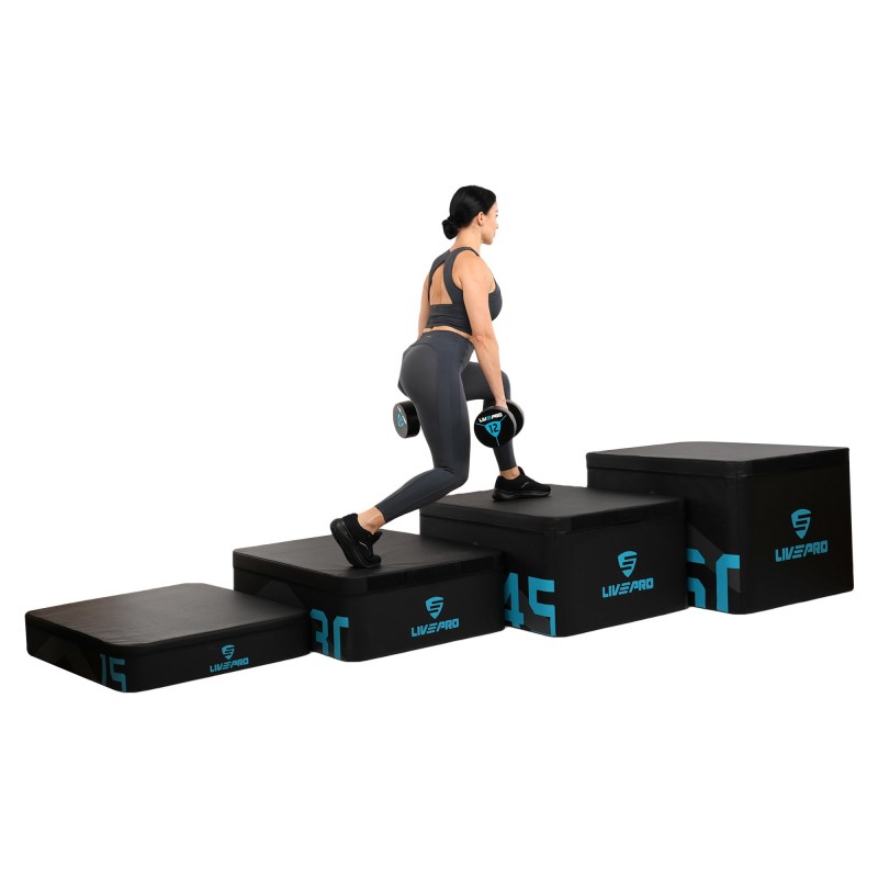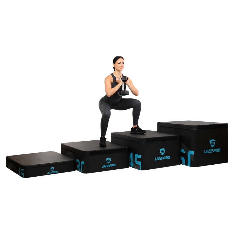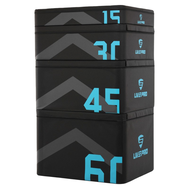 Пліобокс для кросфіту набір 4 бокси LiveUp 90х75х15/30/45/60см, чорний, код: LP8158