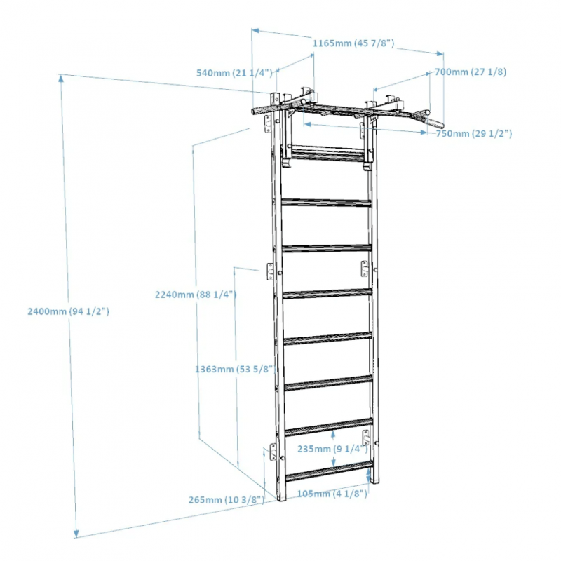 Шведська стінка BenchK 731B – це комбінація BenchK 700B зі знімною перекладиною PB3B. Багатофункціональна перекладина PB3B має гачки з фетровою підкладкою. Регулювання висоти перекладини є простим і може бути виконане однією дорослою людиною. Коли перекладина перевернута, вона служить підставкою для штанги. Максимальна вага штанги становить 200 кг.