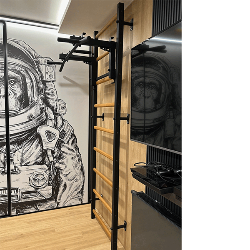 З додатковим обладнанням шведська стінка стане чудовим домашнім тренажерним залом на площі 1 кв. м.