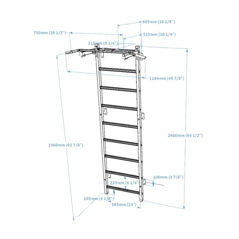 Гімнастична шведська стінка BenchK 721B – це модель зі стаціонарно закріпленою турніком. Шведська стінка виготовлена з поєднання масиву бука та металу, що створює спортивний предмет меблів, який ідеально пасує до будь-якого інтер'єру. Металеві профілі шведської стінки мають прямокутну форму 40 x 50 мм та товщину 2 мм. Вони пофарбовані порошковою фарбою чорного матового кольору, що підвищує їхню довговічність. Точність кожної деталі досягнута завдяки використанню сучасних технологій лазерного різання та з'єднання. Труба має діаметр 27,2 мм та товщину 2 мм.