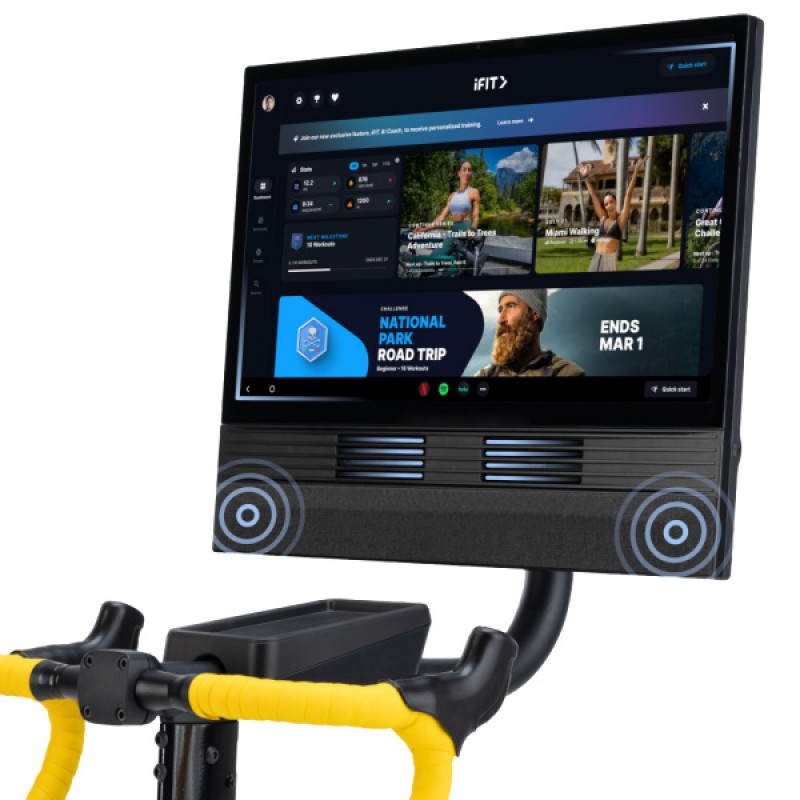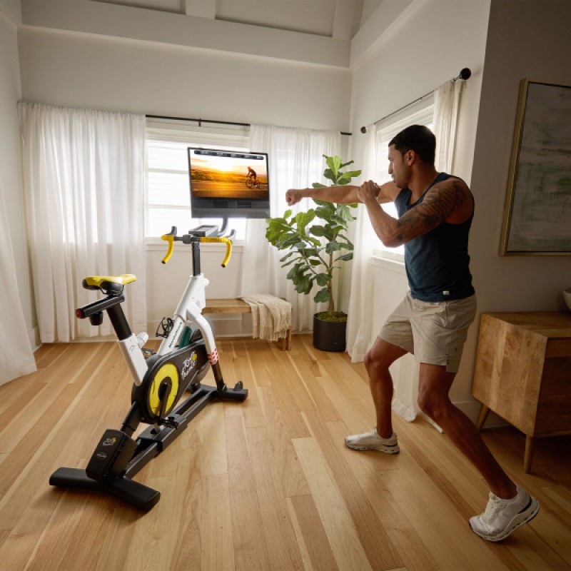 Під час кожного заїзду iFIT відстежує ваші показники, автоматично регулюючи кут нахилу від +20% до -10% і підбираючи відповідний рівень опору відповідно до ваших потреб кожного дня. Починаючи з першого тренування, усі заняття адаптуються до вашого рівня фізичної підготовки. Велотренажер Tour de France Indoor Bike забезпечує плавне та безшумне обертання педалей, що дозволяє тренуватися в будь-який час доби. Педалі легко змінюються, щоб ви могли використовувати ті самі, що й на вашому шосейному велосипеді. Від місцевих вуличок до маршрутів на Майорці з професіоналами — відчуйте себе учасником туру завдяки реалістичному керму з нижнім хватом, налаштовуваним передачам і вільному обертанню колеса.