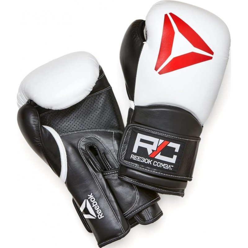 Боксерські рукавиці Reebok Combat Leather Boxing Gloves 10 унцій, чорний-білий, код: 885652010283