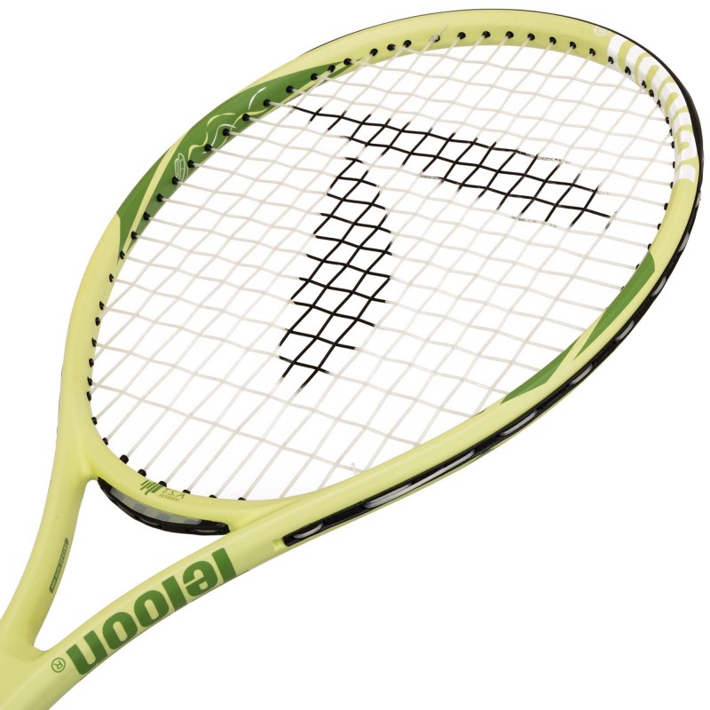 Ракетки для великого тенісу від бренду Teloon - це якісний інвентар, який можна використовувати для навчання техніки гри в теніс на професійному рівні, а також для аматорських ігор. Ракетка виготовляється з легкого і міцного металу - алюмінію. Це дозволяє, з одного боку, забезпечити маневреність інвентарю і не перевантажувати руки дитини, а з іншого боку, зробити його максимально міцним і зносостійким. Такі ракетки мають тривалий термін служби, попри те, що найчастіше їх використовують новачки, які ще не до кінця володіють технікою ударів і нерідко промахуються по м'ячу. Голова ракетки має велику зону для ефективного удару, що дозволяє зробити удари максимально точними. На ручці присутня намотка, яка перешкоджає ковзанню рук.