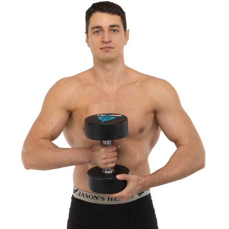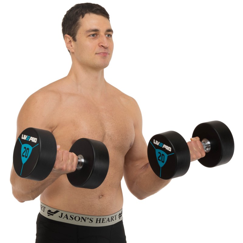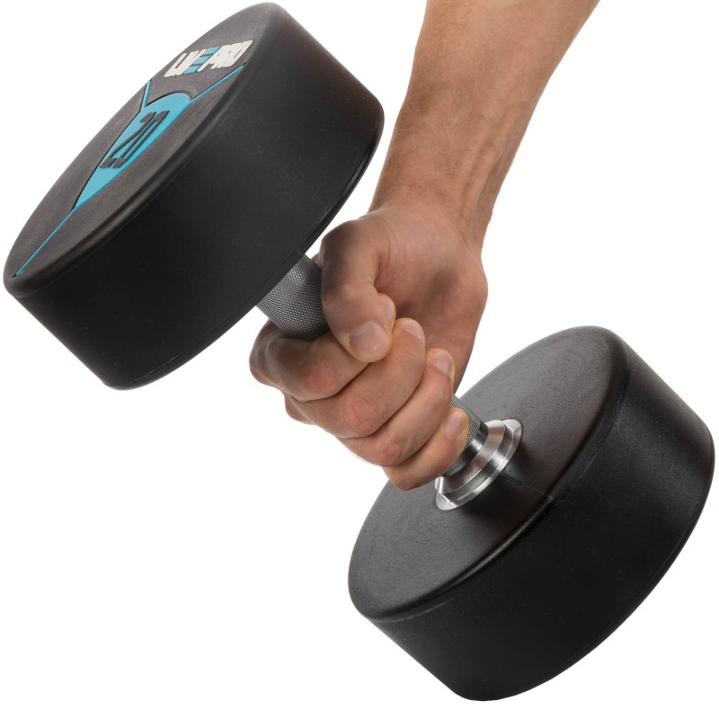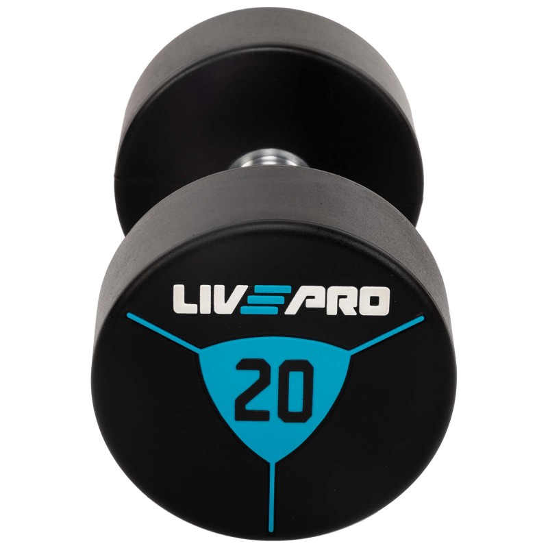 Гантелі цільні професійні з поліуретановим покриттям LiveUp 2х20 кг, чорний-синій, код: LP8000-20