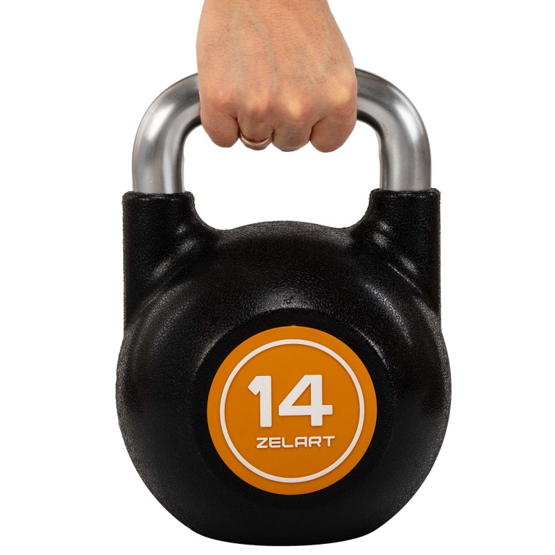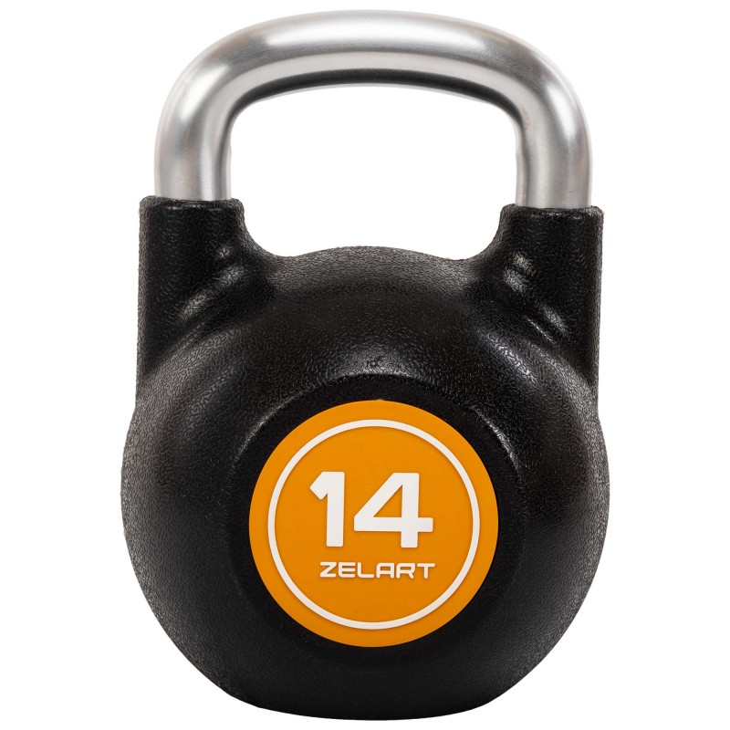Гиря змагальна цільна чавунна з CPU покриттям та хромованою ручкою Zelart 14кг, чорний, код: TA-4756-14