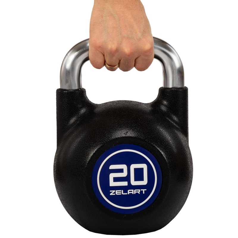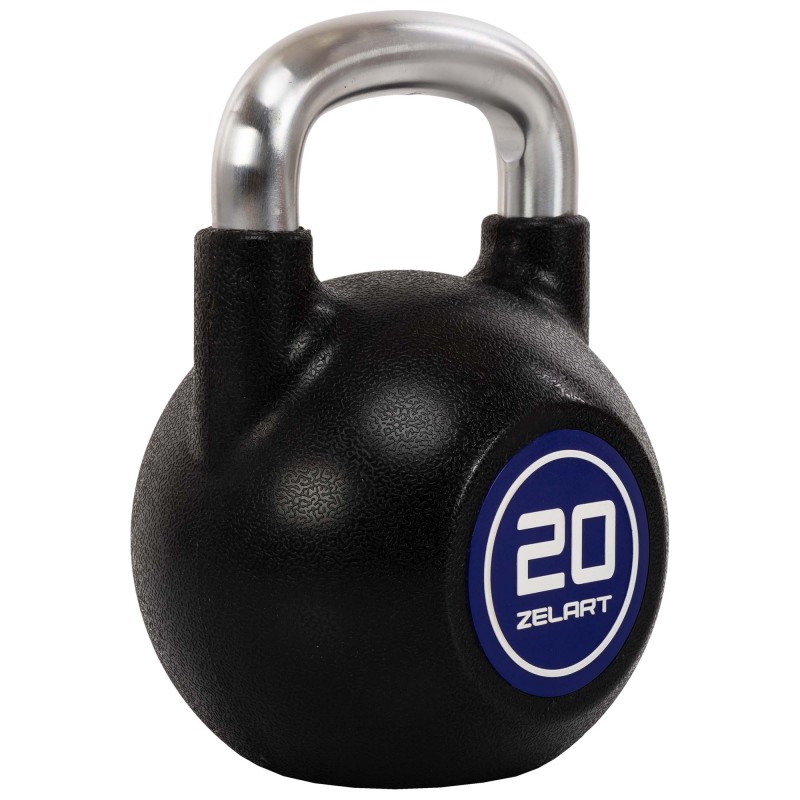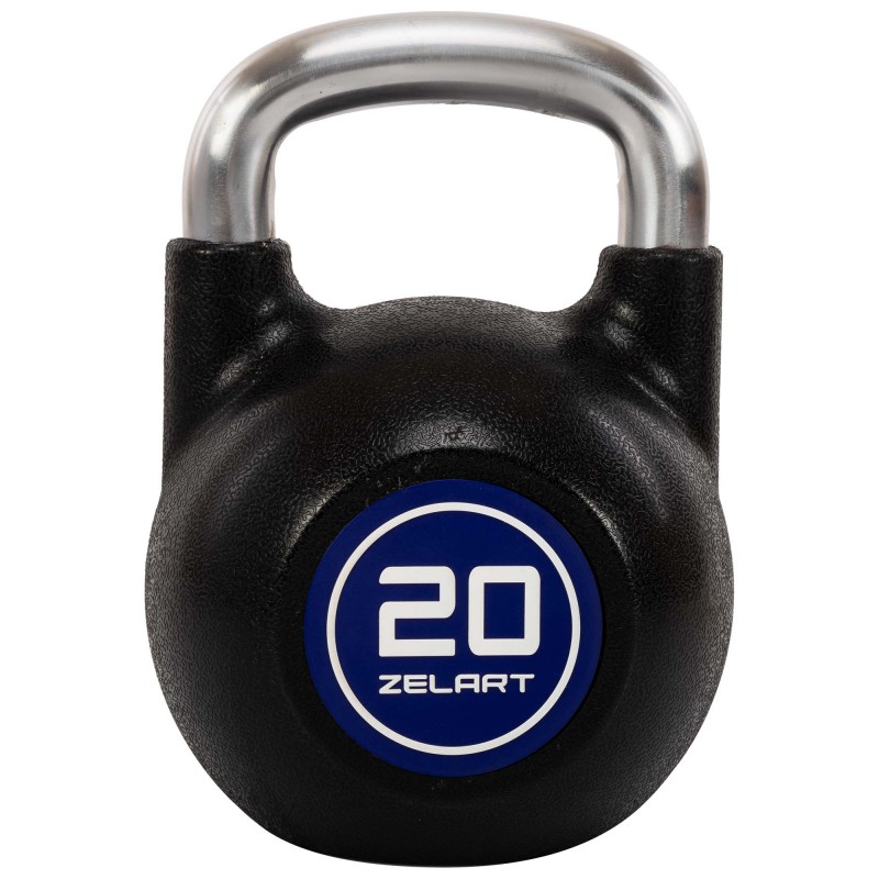 Гиря змагальна цільна чавунна з CPU покриттям та хромованою ручкою Zelart 20кг, чорний, код: TA-4756-20