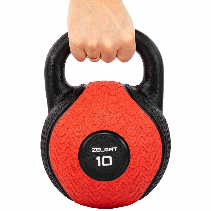Цілісна тренувальна гиря Zelart виготовлена з гуми і містить наповнювач - пісок. Така гиря відрізняється високою міцністю і довговічністю, в разі падіння вона не зламається. Спортивний снаряд має фіксовану вагу, що дозволяє з високою точністю підібрати навантаження під час тренування. Гиря має стандартну для подібних снарядів форму. Ручка має оптимальний розмір для комфортного захоплення. На тілі гирі є маркування, яке вказує на вагу спортивного снаряда і дозволяє швидко ідентифікувати його серед інших.