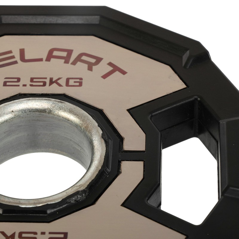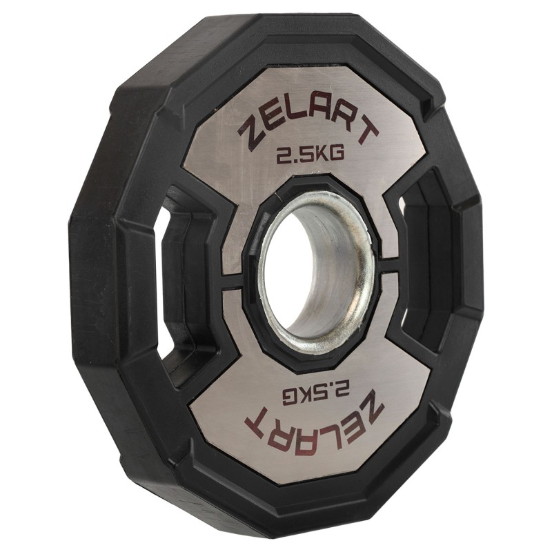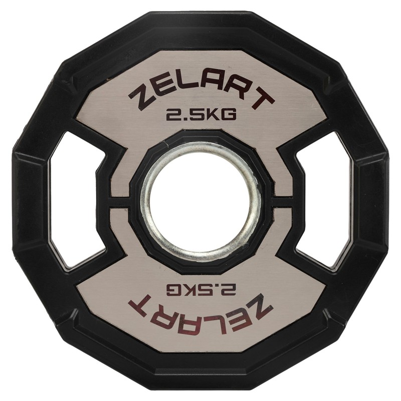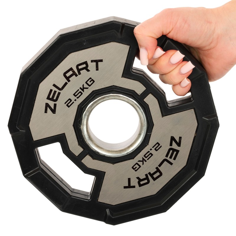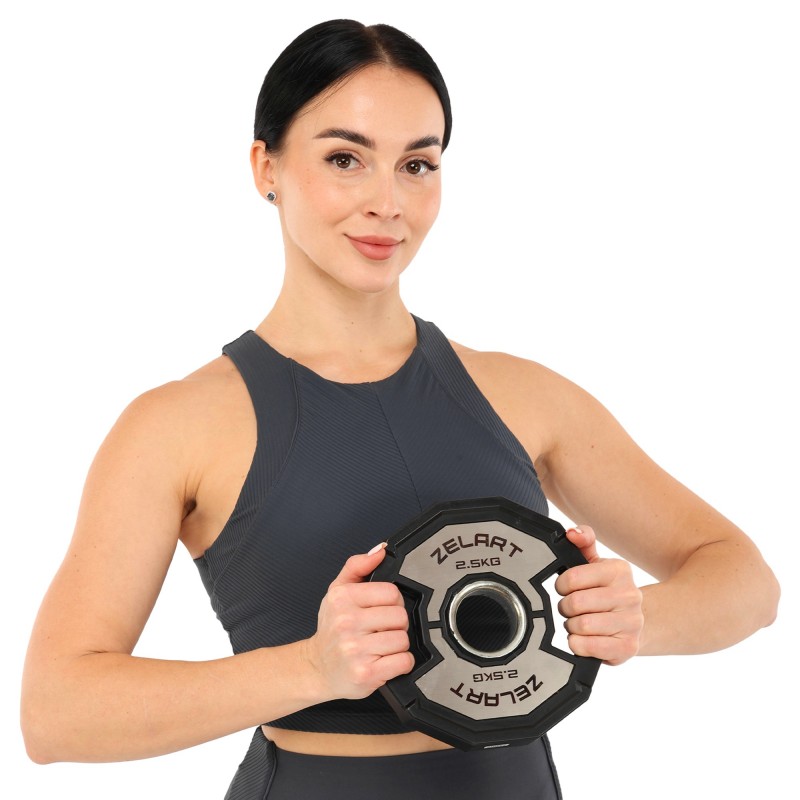 Щоб відрегулювати вагу на штанзі і навантаження на м'язи під час виконання чергової вправи, варто використовувати якісні диски. Диски від бренду Zelart мають дуже точну вагу і зручну форму, яка дозволяє легко переносити їх по залу, встановлювати на штангу і знімати з неї. У дисках є прорізи, які формують ручки для зручного захоплення інвентарю. Внутрішній діаметр диска становить 51 мм, що відповідає розмірам олімпійського грифа. Виготовлені диски з чавуну і покриті гумою для захисту від корозії і пошкоджень. Обгумовані диски не видають зайвого шуму під час тренування і не пошкоджують підлогове покриття в разі падіння. На кожному диску є маркування, яке вказує на його вагу і дозволяє швидко ідентифікувати спортивний інвентар серед інших.