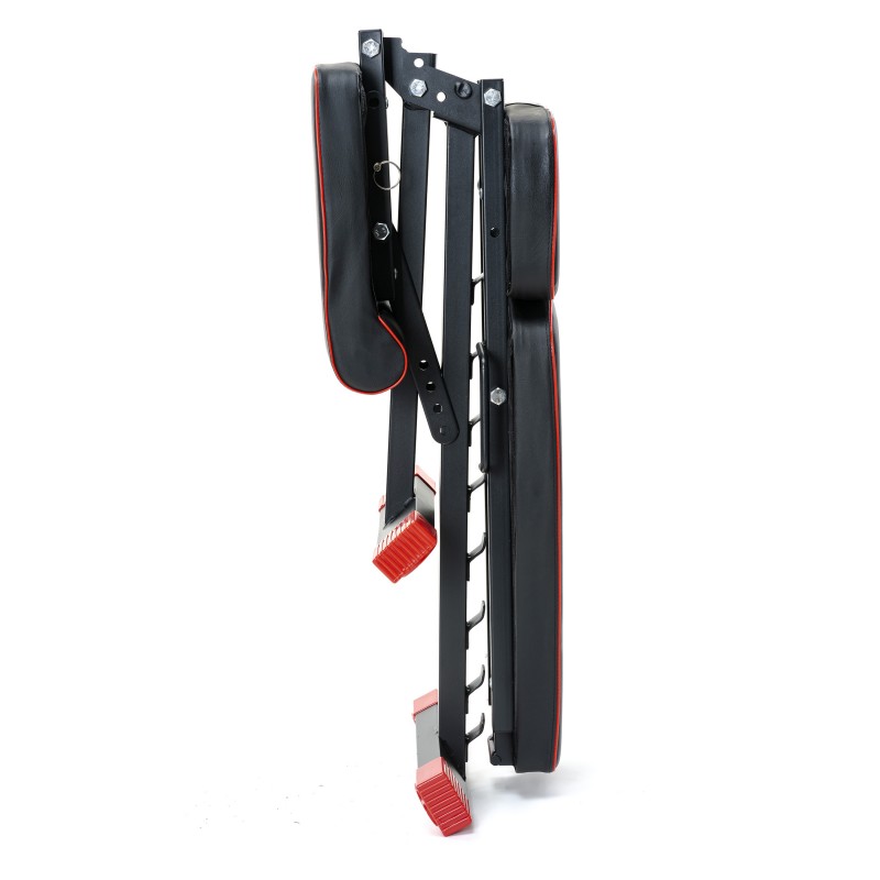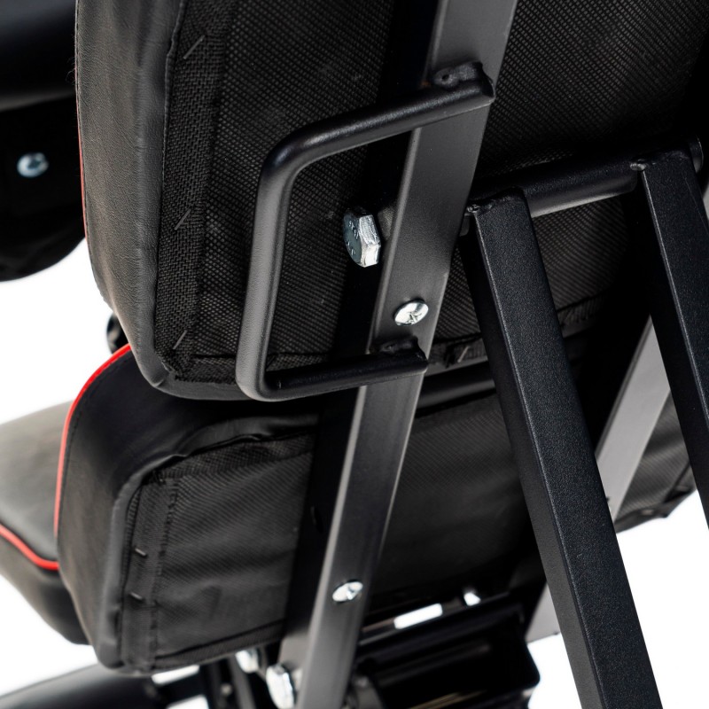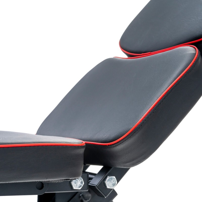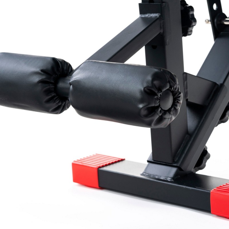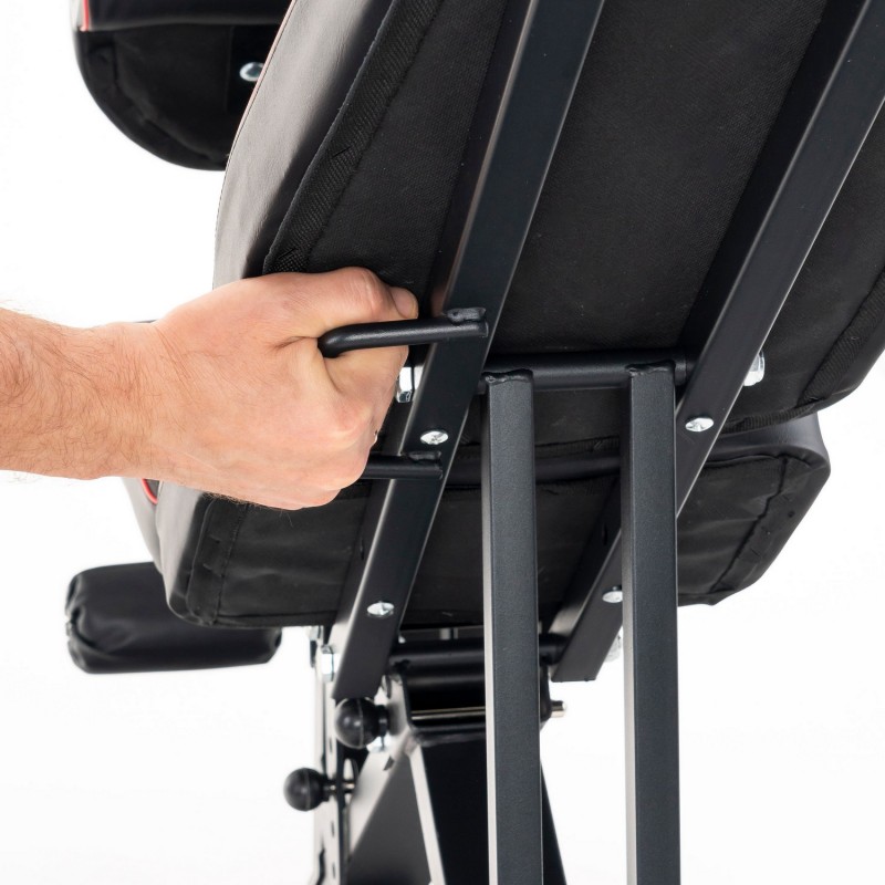 Спинка регулюється в 8 положеннях (-10 ° ... + 90 °), а сидіння - в 4 позиціях, що забезпечує комфортну позицію під час жиму, преса та вправ на біцепс на парті скотту. Приставка для ніг фіксується в кількох положеннях під ваше зростання.