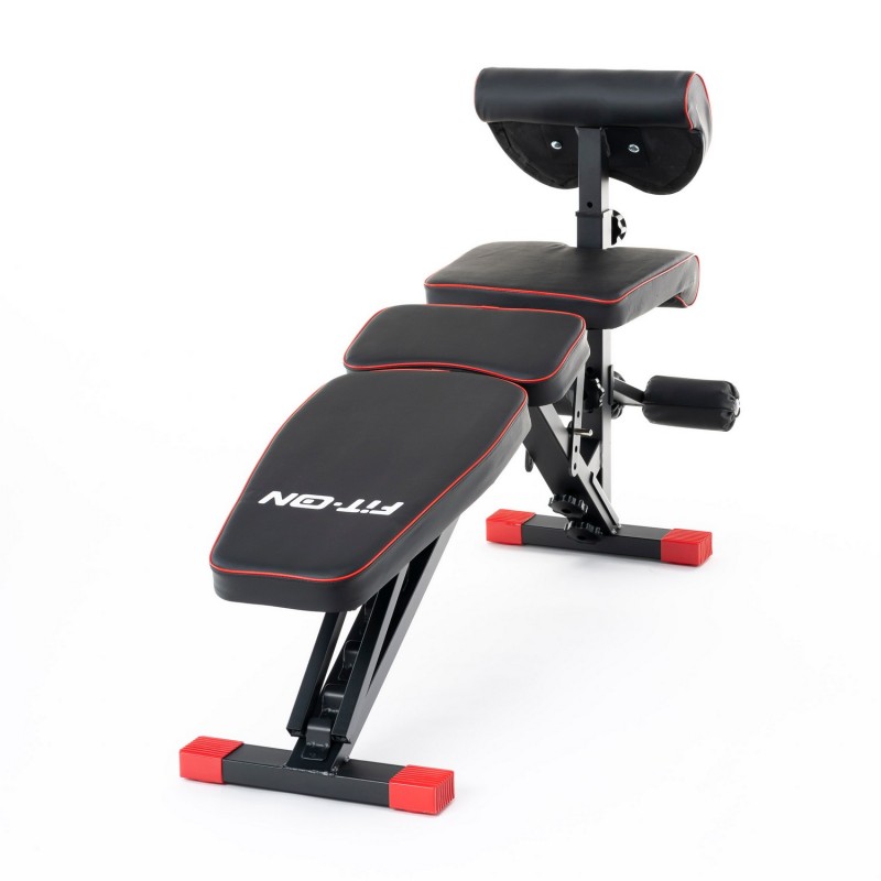 Fit‑On FN‑S202 – це професійна лавка з вбудованою приставкою для ніг і модульною конфігурацією. Конструкція надзвичайно міцна, зручна у використанні та дозволяє виконувати широкий спектр вправ вдома або у невеликому залі. Лава має 8 рівнів регулювання спинки (у тому числі негативні кути), знімну приставку для ніг та паоту скотту. Вона підтримує інтенсивні тренування на груди, плечі, ноги та прес, забезпечуючи безпечний та ефективний спортзал у вас вдома.