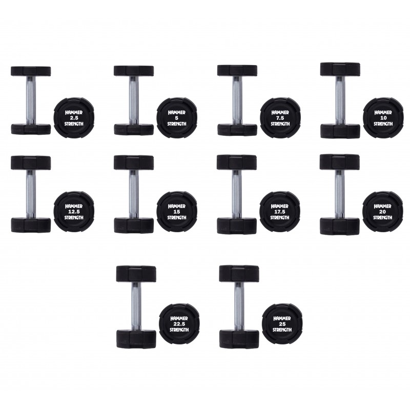 Гантельний ряд 2.5–25 кг Hammer Strength TPU (10 пар) 275 кг — професійні гантелі для тренажерного залу