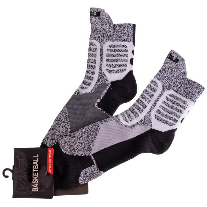 Шкарпетки спортивні для баскетболу PlayGame, розмір 40-45, сірий-білий, код: DML7502_GRW