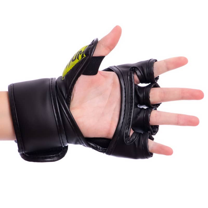 Рукавички для змішаних єдиноборств MMA L, чорний-салатовий, код: BO-8355_LBKLG